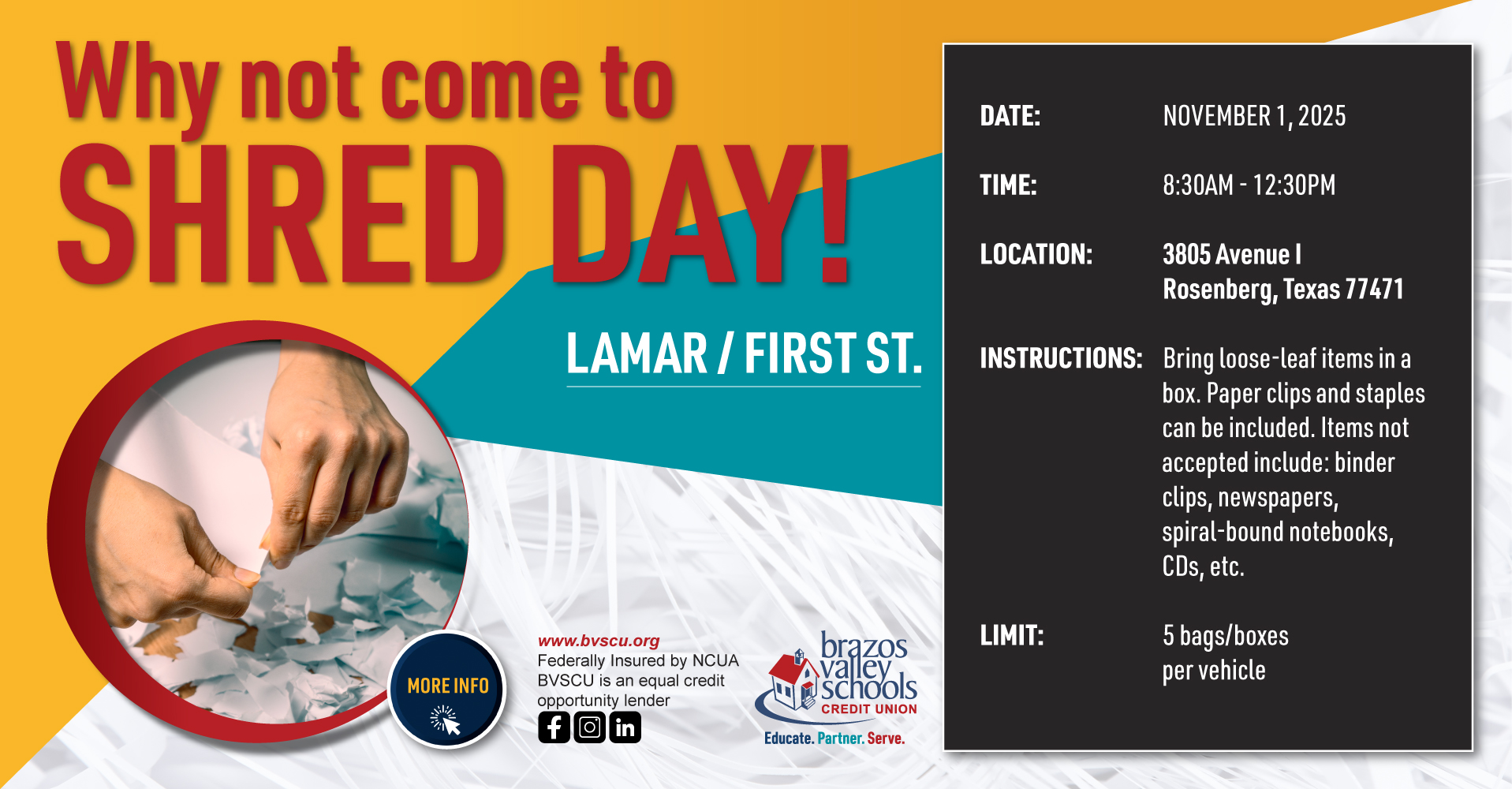 Started in 1954 Brazos Valley Schools Credit Union provides Katy, TX and its 13-county area with Savings, Checking, Loans, Credit, and Financial counseling along with many more banking services. We started with one office in Katy and now serve over 60,000 members in 13 counties at 12 branches from College Station to Rosenberg. If you're a community member that lives, works, worships or attended school within the geographical boundaries of our 51 school districts, call or schedule an appointment today!